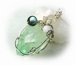 良質なグリーンアポフィライトと贅沢なレアストーンの世界で唯一つのシナジーペンダントです。